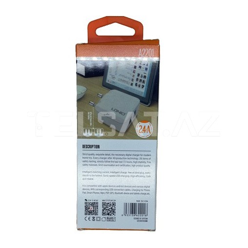 LDNIO USB Auto-ID A2201, avtomatik tanıma (Auto-ID) texnologiyası ilə təchiz olunmuş bir USB şarj adaptəridir. Bu adaptər, quraşdırılmış cihazın şarj tələblərinə uyğun olaraq optimal gücü avtomatik olaraq təyin edir və bu sayədə cihazlarınızın sürətli və effektiv şarj olunmasına kömək edir.